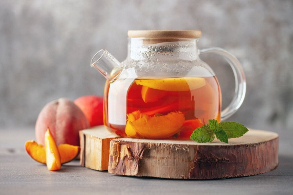 Chá de pêssego e hortelã Chá de pêssego e hortelã Imagem: NatalyaBond | Shutterstock