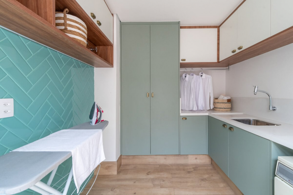 Para a arquiteta Isabella Nalon, armários planejados são excelentes para aproveitar a área de serviço. Eles podem ser altos, para alojar vassouras, rodos e escadas ou padrões, ou na forma de gavetões, para comportar roupas.