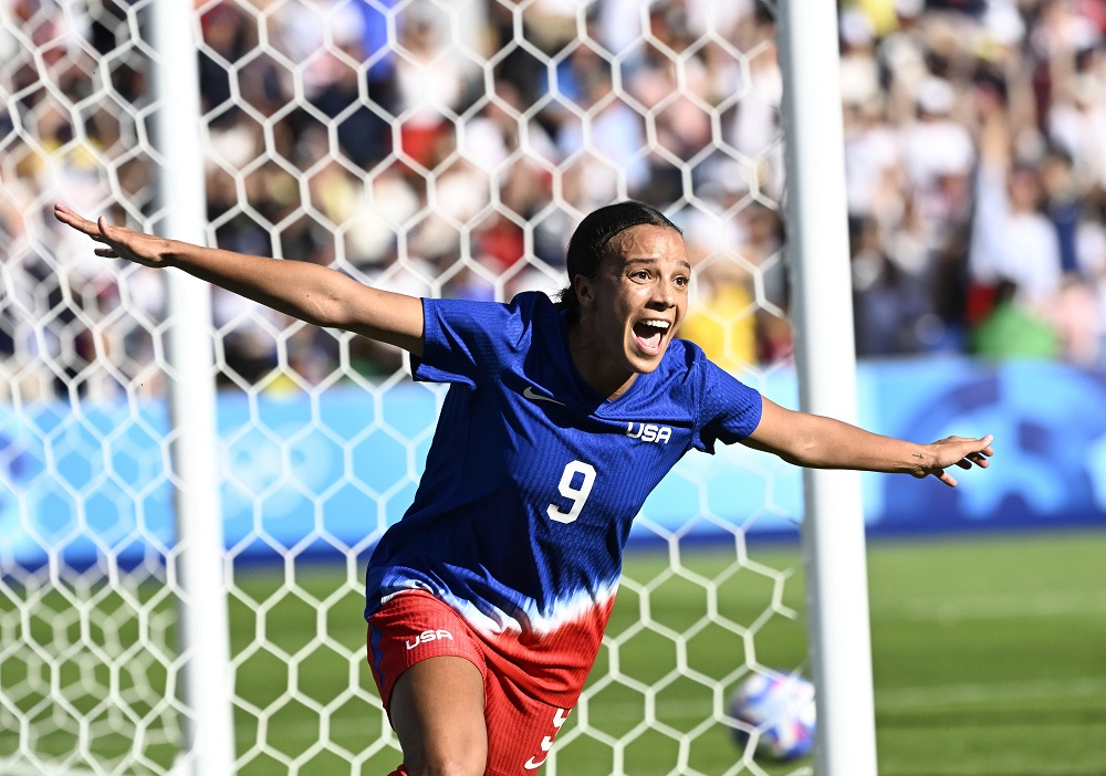 ANDRÉ DURÃOO/ENQUADRAR/ESTADÃO CONTEÚDOMallory Swanson, dos Estados Unidos, comemora após marcar seu gol sobre o Brasil durante partida valendo a medalha de ouro do futebol feminino disputada no Parc des Princes, em Paris, na França, durante os Jogos Olímpicos de Verão, neste sábado, 10 de agosto de 2024.