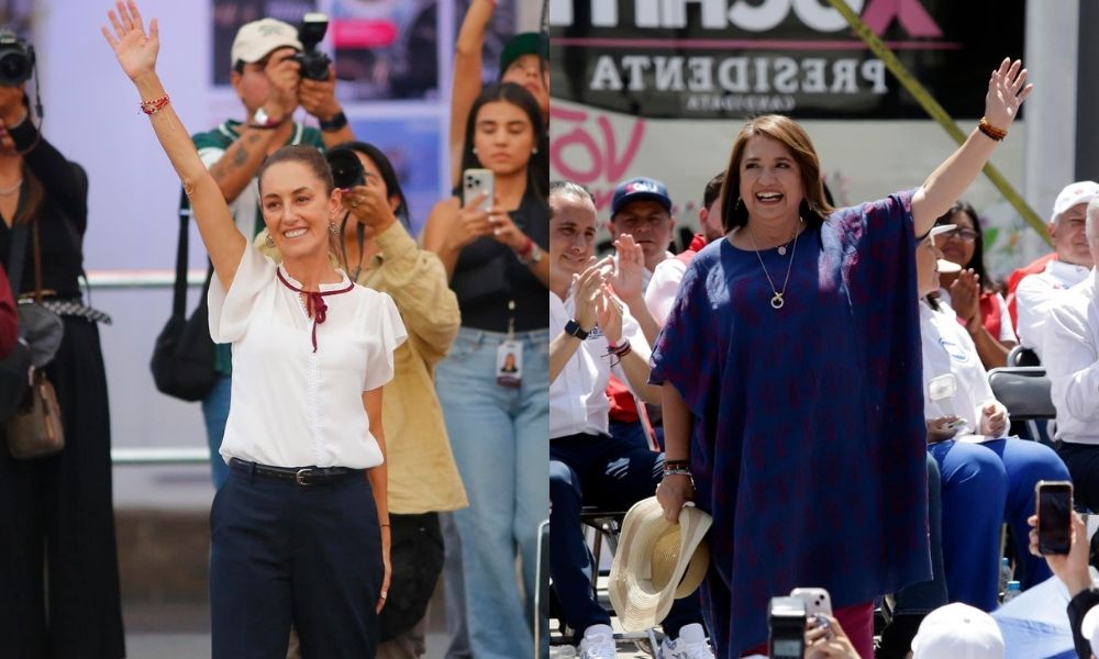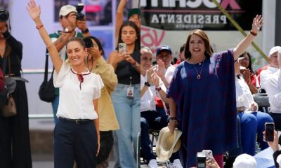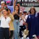 Dispusta está entre Cláudia Sheinbaum, Xóchitl Gávez e o único homem, Jorge Álvarez Máynez EFE/ Francisco Guasco e EFE/ Hilda Ríos Dispusta está entre duas mulheres...