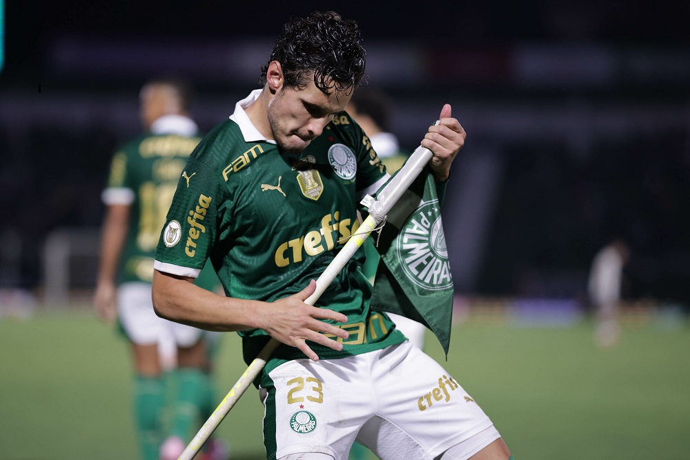 ETTORE CHIEREGUINI/AGIF – AGÊNCIA DE FOTOGRAFIA/AGIF/ESTADÃO CONTEÚDORaphael Veiga jogador do Palmeiras comemora seu gol durante partida contra o Atlético-MG