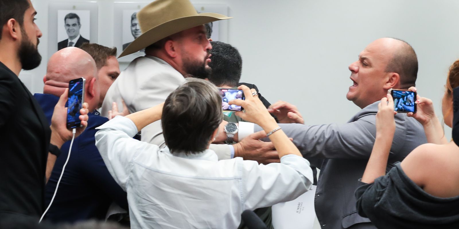Nos corredores da Câmara, os deputados acabam separados por assessores que acompanhavam a confusão.