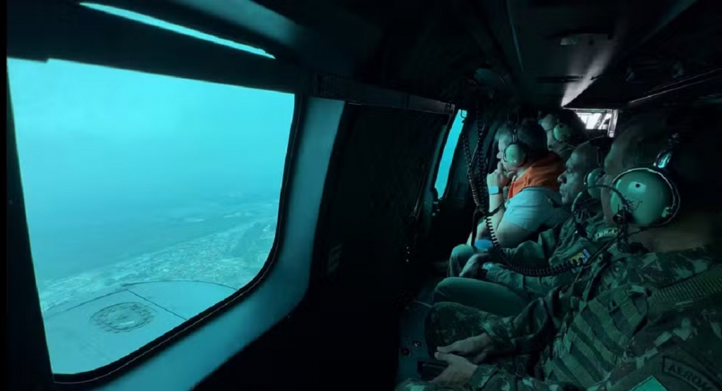 Na manhã deste sábado (24), o governador Tarcísio de Freitas realizou um sobrevoo nas áreas com maior incidência de incêndios no interior do estado de São Paulo. Conforme o monitoramento do Centro de Gerenciamento de Emergências (CGE) da Defesa Civil, atualmente, 34 cidades estão em alerta máximo para queimadas, e 24 enfrentam focos ativos de incêndio. As localidades em questão sofrem com baixa umidade do ar e elevado risco devido à onda de calor que afeta todo o estado. Mais de 7,3 mil entre profissionais e voluntários estão mobilizados no combate às chamas e na orientação da população. O gabinete instalado nesta sexta-feira (23) permanece ativo no âmbito da Operação SP Sem Fogo, que integra especialistas da Defesa Civil do Estado e das secretarias da Segurança Pública (SSP), Agricultura e Abastecimento, e Meio Ambiente, Infraestrutura e Logística (Semil).