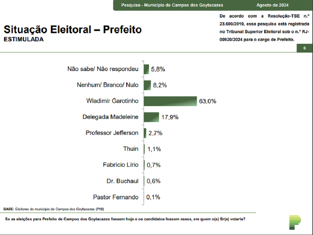 Paraná Pesquisas: Em Campos dos Goytacazes, Garotinho lidera com 63%; Del. Madeleine é a segunda com 17,9%
