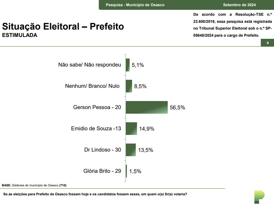 Paraná Pesquisas: Gerson Pessoa (Podemos) lidera para prefeitura de Osasco com 56,5%