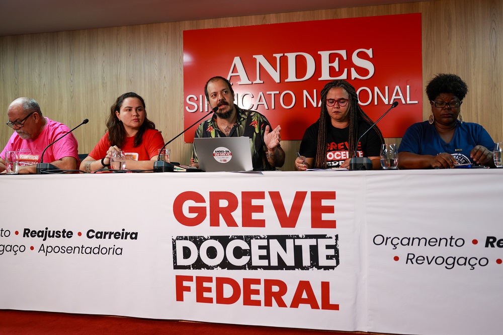 Fabio Rodrigues-Pozzebom/Agência BrasilOs comandos nacionais de greve do Andes Sindicato Nacional, Sinasefe e da Fasubra Sindical dão entrevista sobre as negociações e andamentos da greve de professores e técnicos administrativos da educação federal