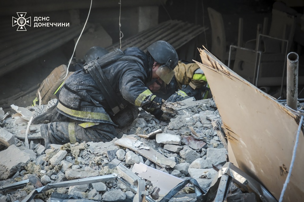 FE/EPA/STATE EMERGENCY SERVICE OF UKRAINE HANDOUTKramatorsk (Ucrânia), 25/08/2024.- Uma foto divulgada pelo serviço de imprensa do Serviço de Emergência do Estado (SES) da Ucrânia mostra socorristas ucranianos trabalhando no local de um ataque de foguete em Kramatorsk, região de Donetsk, leste da Ucrânia, em 25 de agosto de 2024, em meio à invasão russa. Pelo menos uma pessoa morreu e outras seis ficaram feridas depois que um foguete russo atingiu um prédio de hotel em Kramatorsk, disse o Serviço de Emergência do Estado da Ucrânia. O falecido é cidadão da Grã-Bretanha, seu corpo foi encontrado sob os escombros após 19 horas de busca, de acordo com a Polícia Nacional da Ucrânia. Entre os feridos estão quatro jornalistas, cidadãos dos EUA, Alemanha, Letônia e Ucrânia, e também dois moradores locais. Tropas russas entraram em território ucraniano em 24 de fevereiro de 2022, iniciando um conflito que provocou destruição e uma crise humanitária. (Alemania, Gran Bretaña, Letonia, Rusia, Ucrania, Reino Unido)