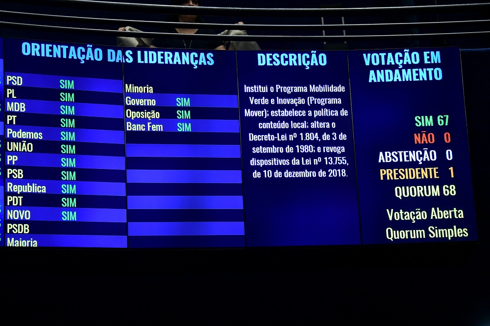 Pedro França/Agência SenadoPainel exibe resultado da votação. do Mover