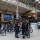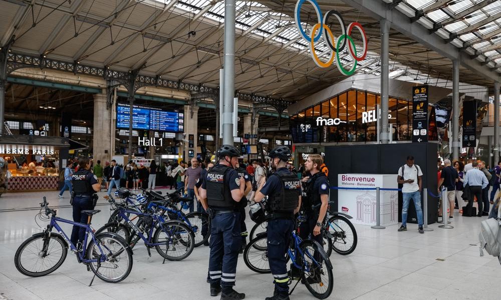 Trens de alta velocidade foram alvo de ataques incendiários na manhã desta sexta-feira MAST IRHAM/EFE/EPA Policiais franceses patrulham dentro da estação Gare du Nord, em Paris...