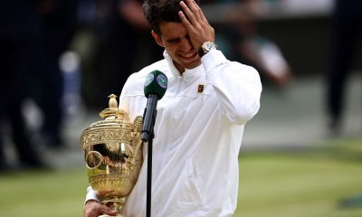Espanhol é o sexto tenista a conquistar a dobradinha Roland Garros-Wimbledon no mesmo ano HENRY NICHOLLS / AFP Alcaraz se torna o quarto tenista da era...