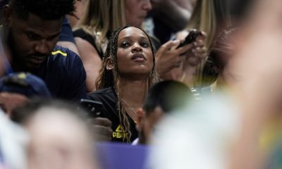 Atletas assistiram ao jogo das arquibancadas e se solidarizaram com o time depois de perder para os Estados Unidos Alexandre Loureiro/COB Rebeca Andrade assiste a partida...