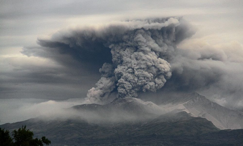 Shiveluch começou a expelir cinzas logo após um tremor de magnitude 7 atingir a costa leste de Kamchatka na manhã de domingo (18) Reprodução /X/@WeatherSarov1I/ViS_DVO_RAN Novos...