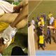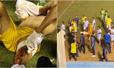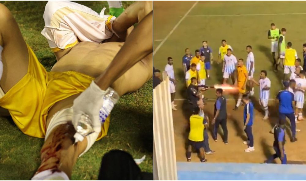 Policial disparou um tiro de bala de borracha em direção a Ramón Souza, que precisou ser socorrido pela ambulância presente no estádio Montagem: Instagram/@gremioanapoli/X/@B24PT O Grêmio...