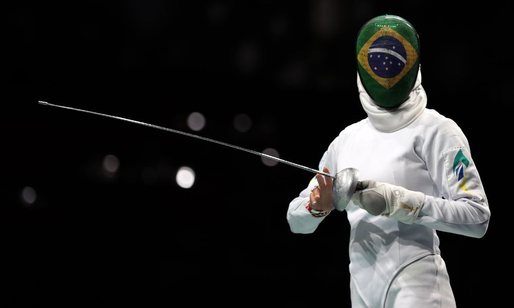 Brasileira competiu após ter sido internada às pressas em Paris; ela foi diagnosticada com um tumor cóccix Reprodução/X/@JogosOlimpicos Natalie Moellhause, competidora do Brasil da esgrima A...