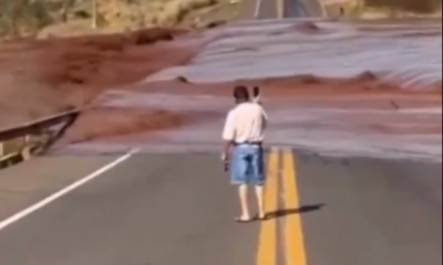 Estrada da BR-163 entre Jaraguari e Campo Grande foi interditada por completo; condomínio de luxo de onde saiu a água tem aproximadamente 100 casas Reprodução/Redes socias...