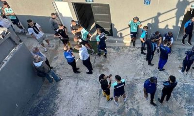 Torcedor do time San Telmo detonou o artefato explosivo na porta do vestiário da equipe Aldosivi, ferindo o técnico Andrés Yllana Reprodução/San Telmo Ataque com bomba...